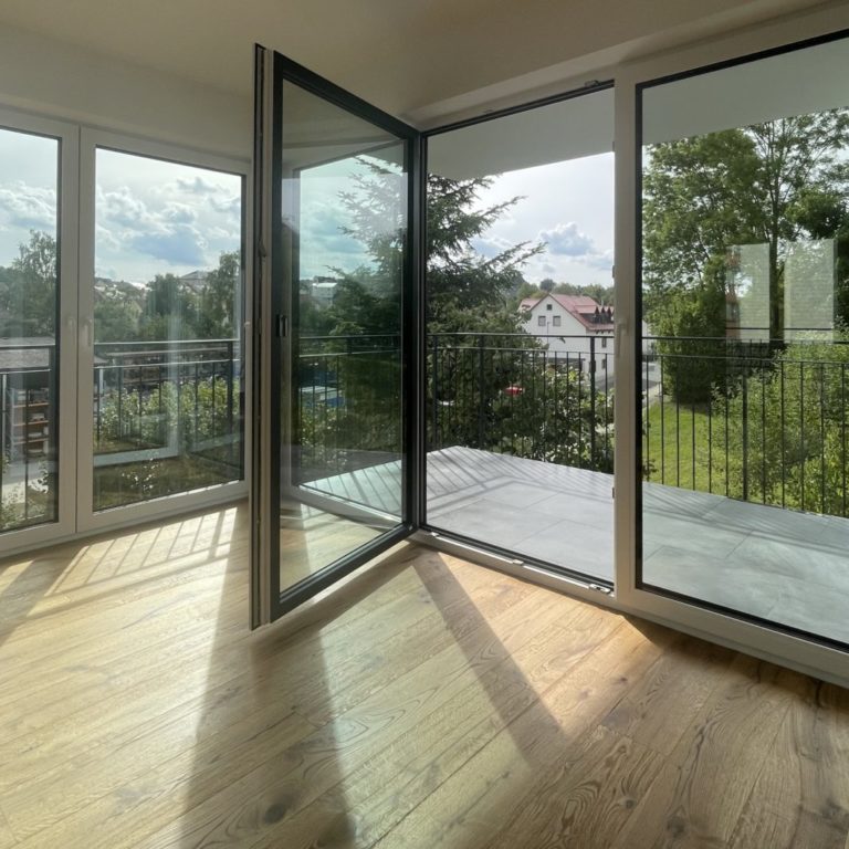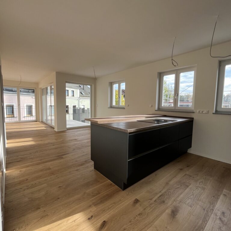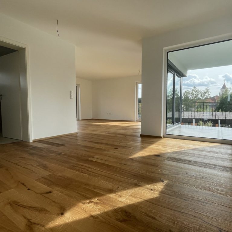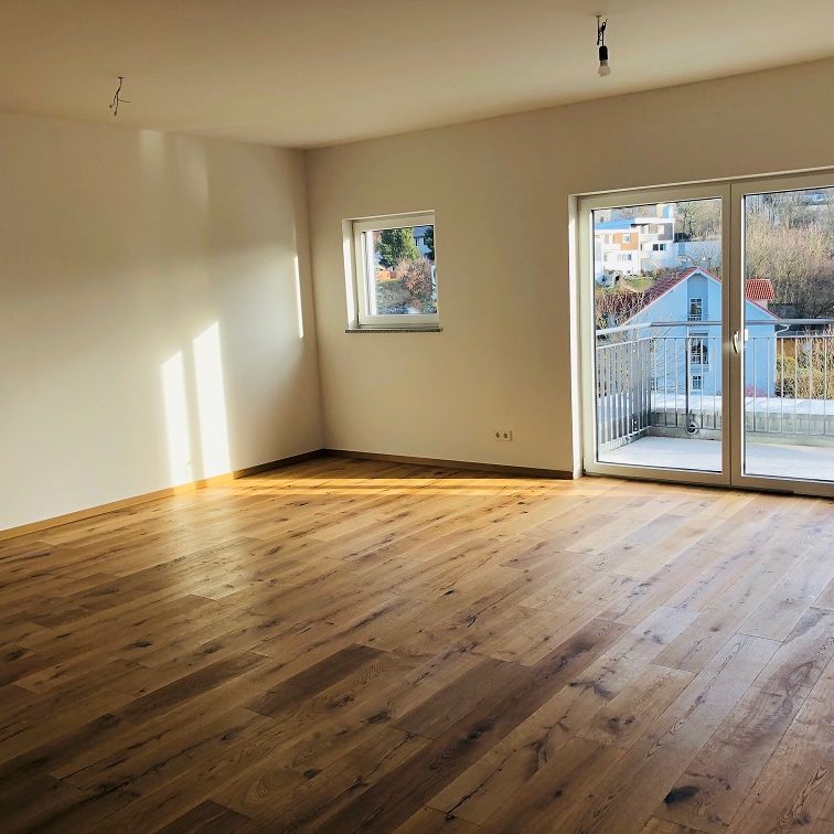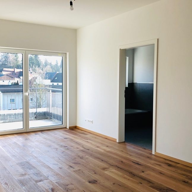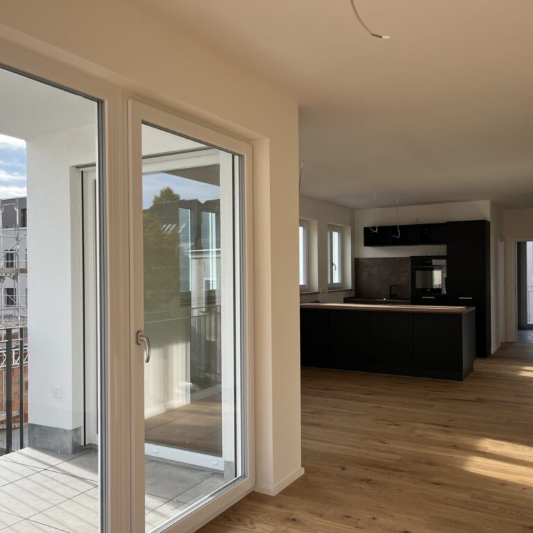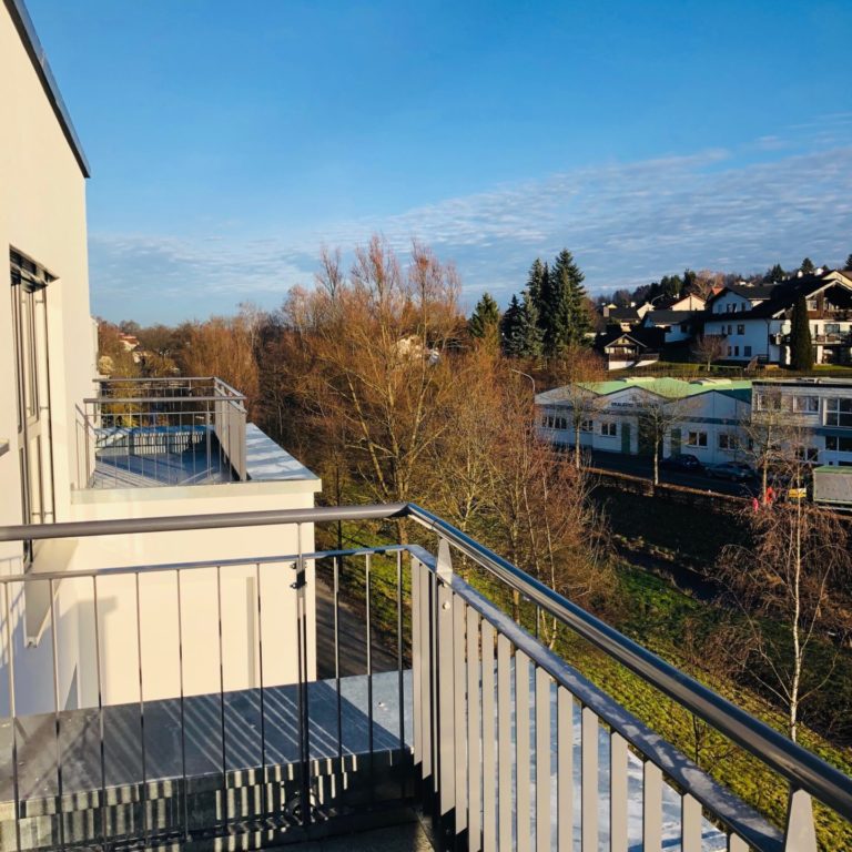Jede der hochwertigen Wohneinheiten ist offen und großzügig gestaltet und mit Balkon bzw. Terrasse Richtung Südwest ausgestattet. Die großen Fensterfronten im Ess-/Wohnbereich sorgen nicht nur für eine herrlich lichtdurchflutete Atmosphäre, sondern bieten außerdem einen wunderbaren Blick über Eschenbach.