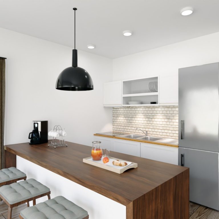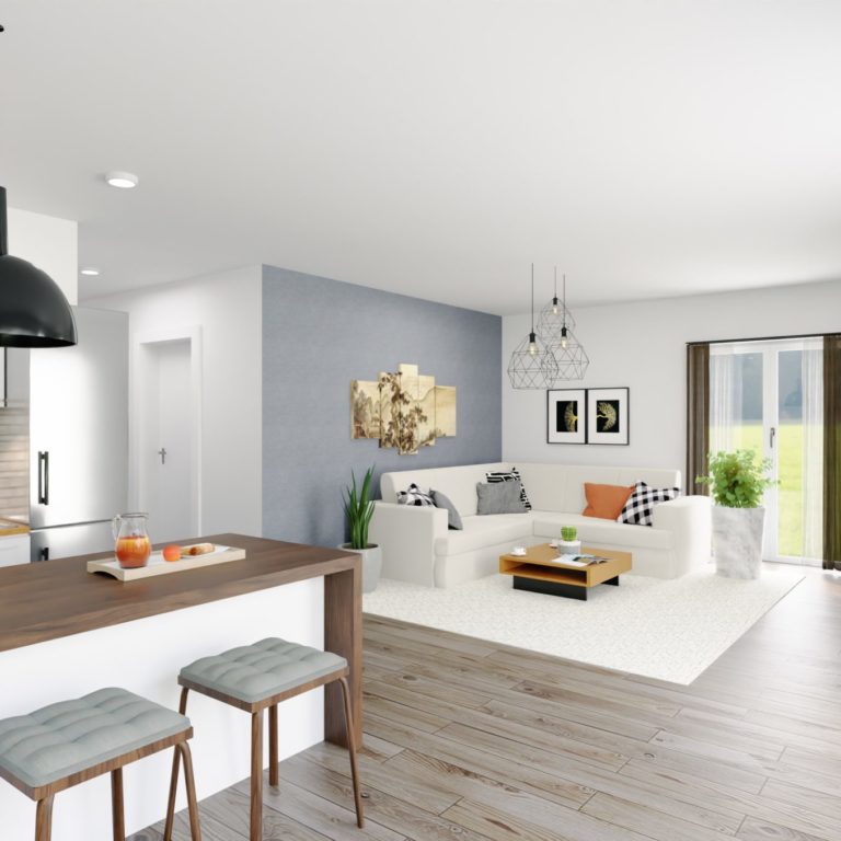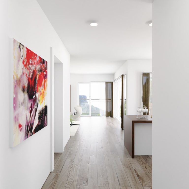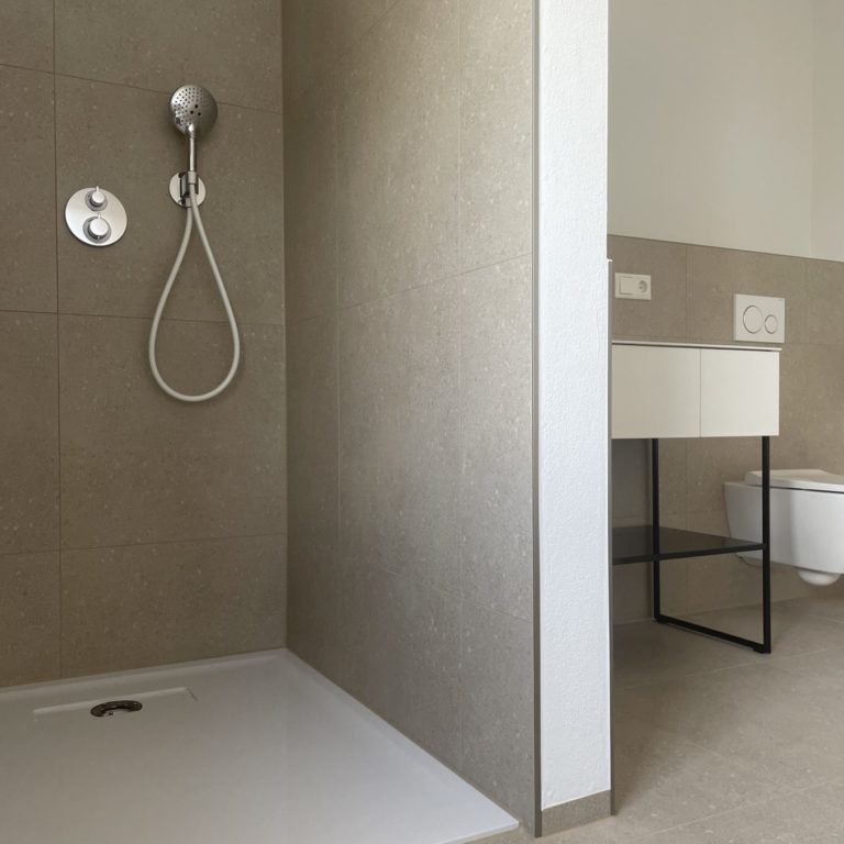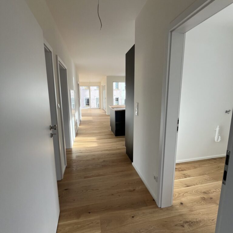 Die beiden Gebäude umschließen einen Innenhof mit ausreichend Parkmöglichkeiten. Haus 1 besteht aus angenehm überschaubaren 11 Wohneinheiten. Diese reichen von hochwertigen Appartements mit 77 m² bis hin zu exklusiven Penthauswohnungen mit 124 m². Alle Wohnungen sind mit Balkonen bzw. Terrassen ausgestattet. Für den Komfort der Bewohner wurde das Haus mit einem Personenaufzug und einer Tiefgarage mit Stellplätzen für jede Wohneinheit ausgestattet. Junge Paare und Familien, Singles und Senioren – die Wohneinheiten sind perfekt auf unterschiedliche Bedürfnisse und Lebensmodelle zugeschnitten.