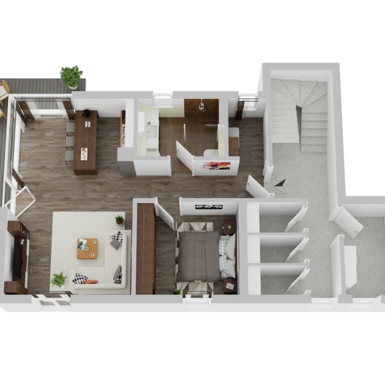Zu jeder Wohnung gehört ein Garagen- bzw. überdachter Stellplatz.
